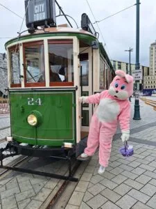 We’ll have a very special long-eared visitor to the Christchurch Tram over Easter weekend! Keep an eye out for the Easter Bunny hopping on and off our tramcars between 10am and 1pm on Saturday 4 April 2026 with some chocolatey Easter treats for children on board.
